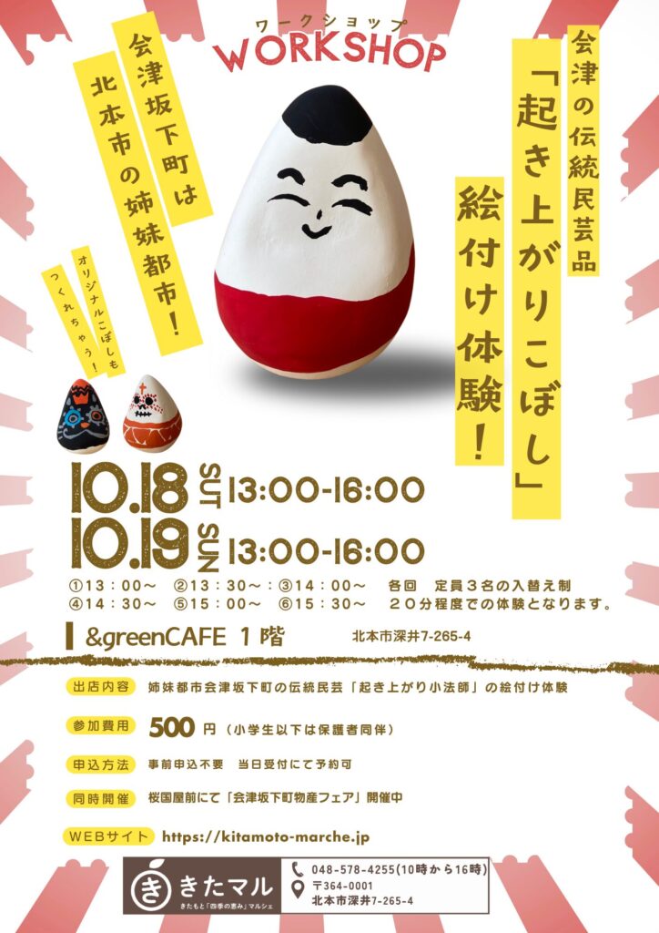 「会津坂下町物産フェア」と「起き上がりこぼし 絵付け体験」ワークショップ