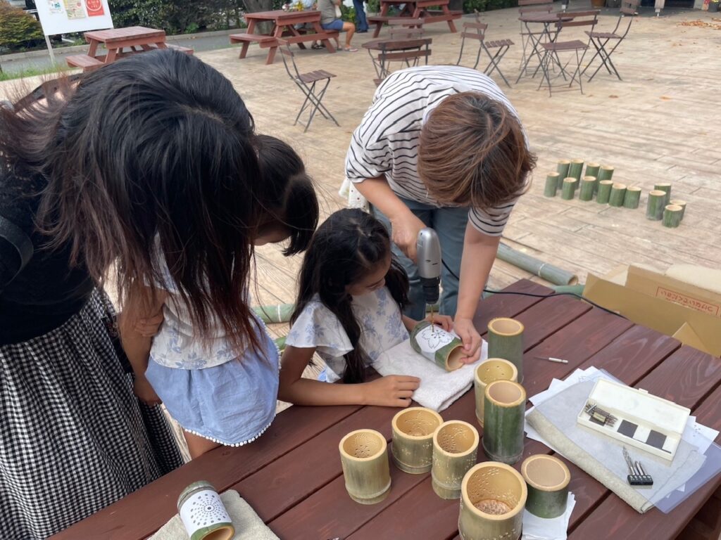 小学生のお子様から大人の方まで、黙々と竹に穴をあける作業に没頭され